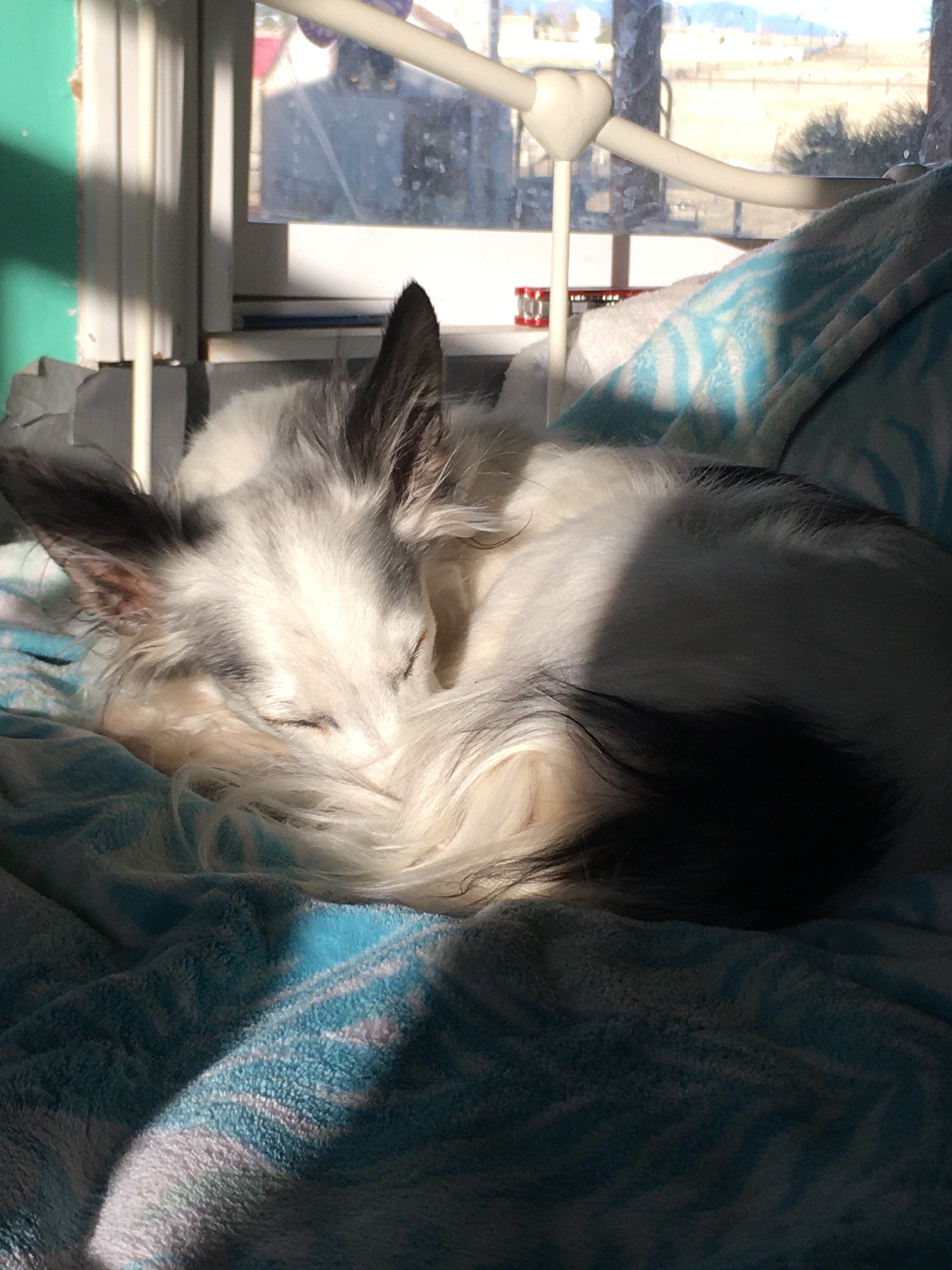 “Angel” is the only girl out of our Helicopter litter, and growing up with boys taught her to be neither angelic nor merciful! She is on the petite side of the lady Silken spectrum and it a playful gentle young momma dog to our Flower and Seeing Spots litters. As an old lady, she is one of the queens in the house, demanding respect from the other dogs and teaching puppies respectful boundaries. Despite her age, she still loves to chase the plastic bunny!