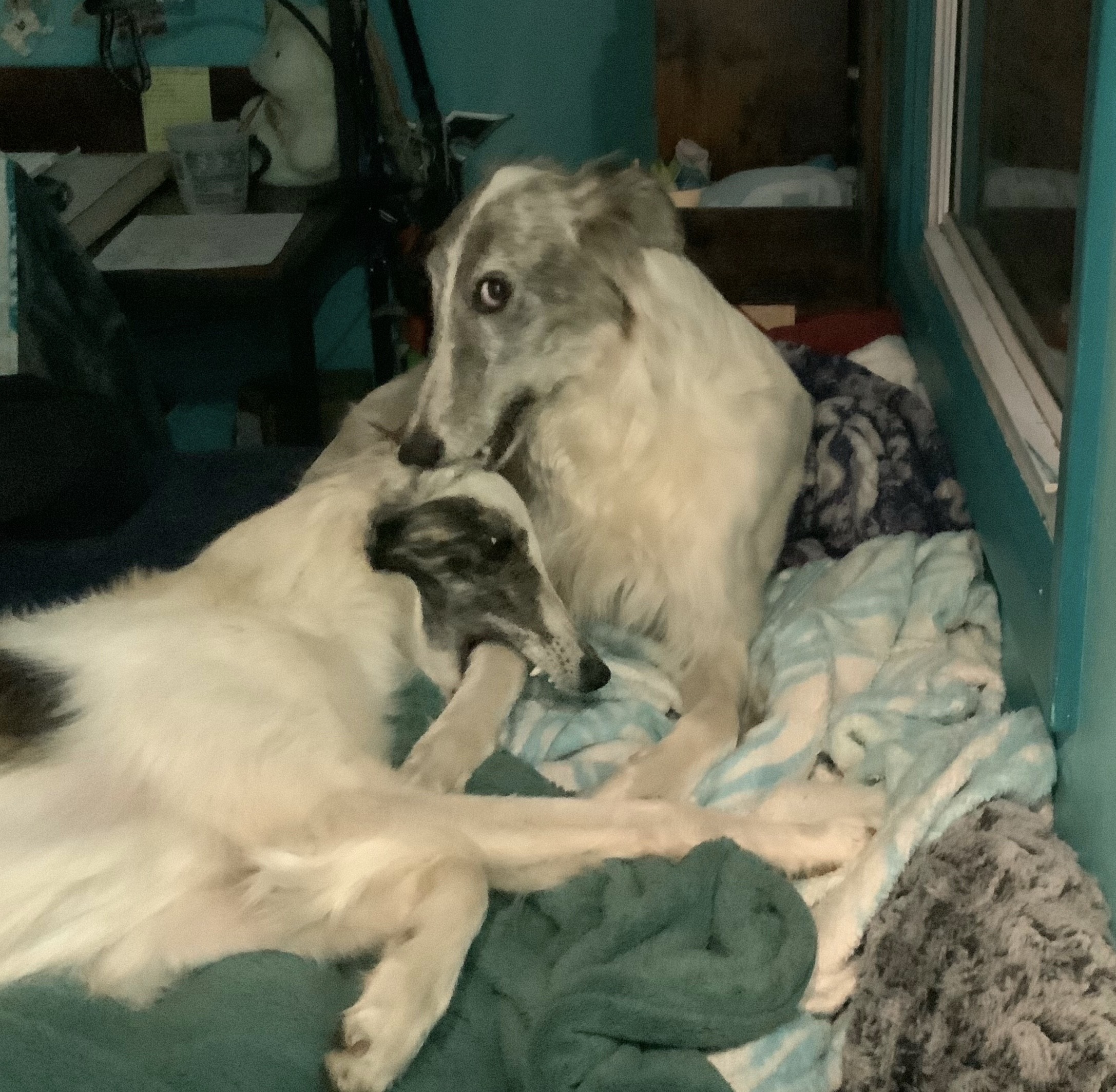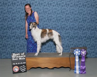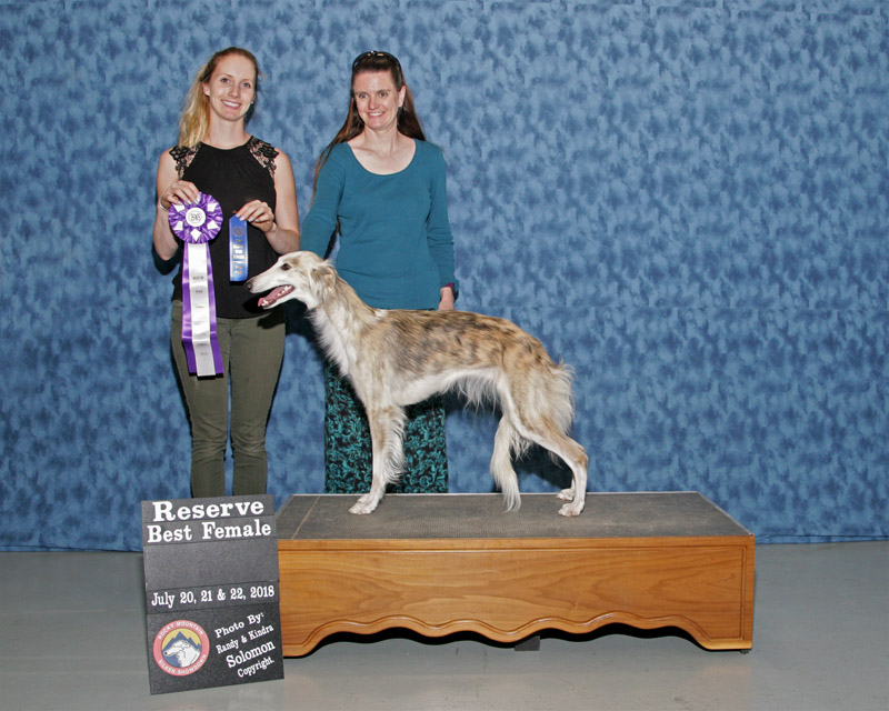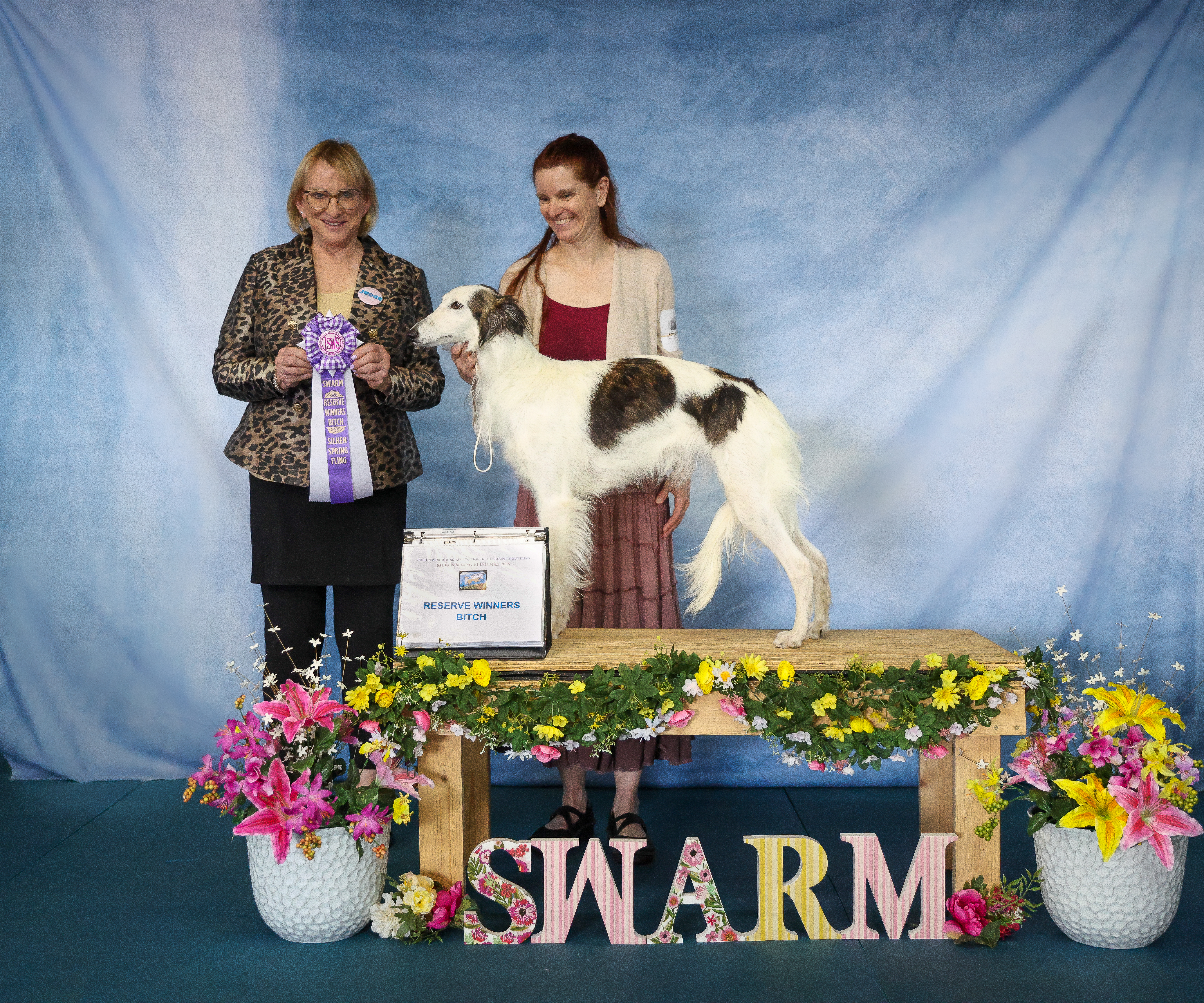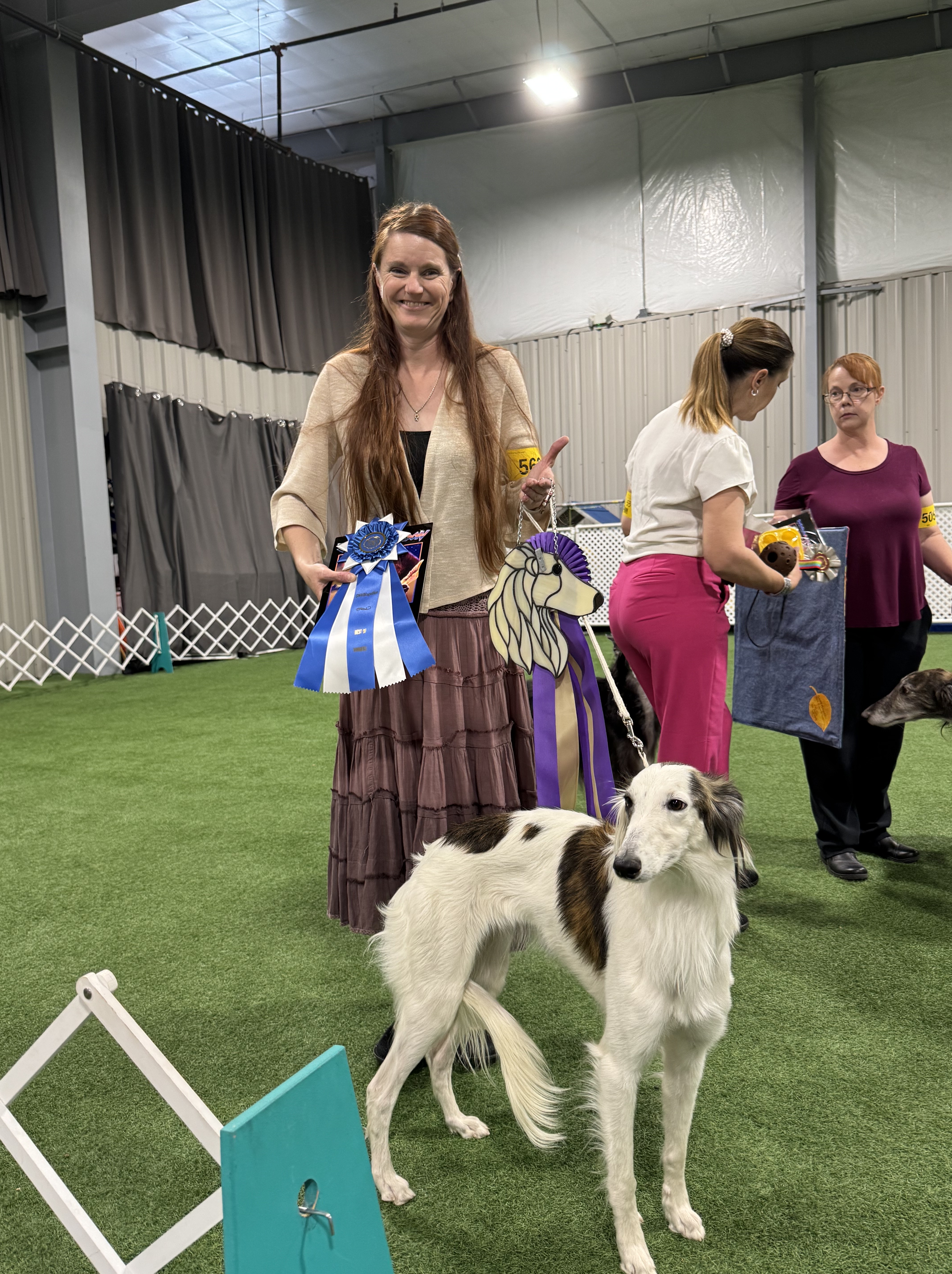 Leopard took a Best in Specialty Show and Winners female in a fall 2024 specialty and a Reserve Winners female in a spring 2025 specialty. She thinks that showing is a pretty silly game compared to chasing plastic, but she is a beautiful girl.