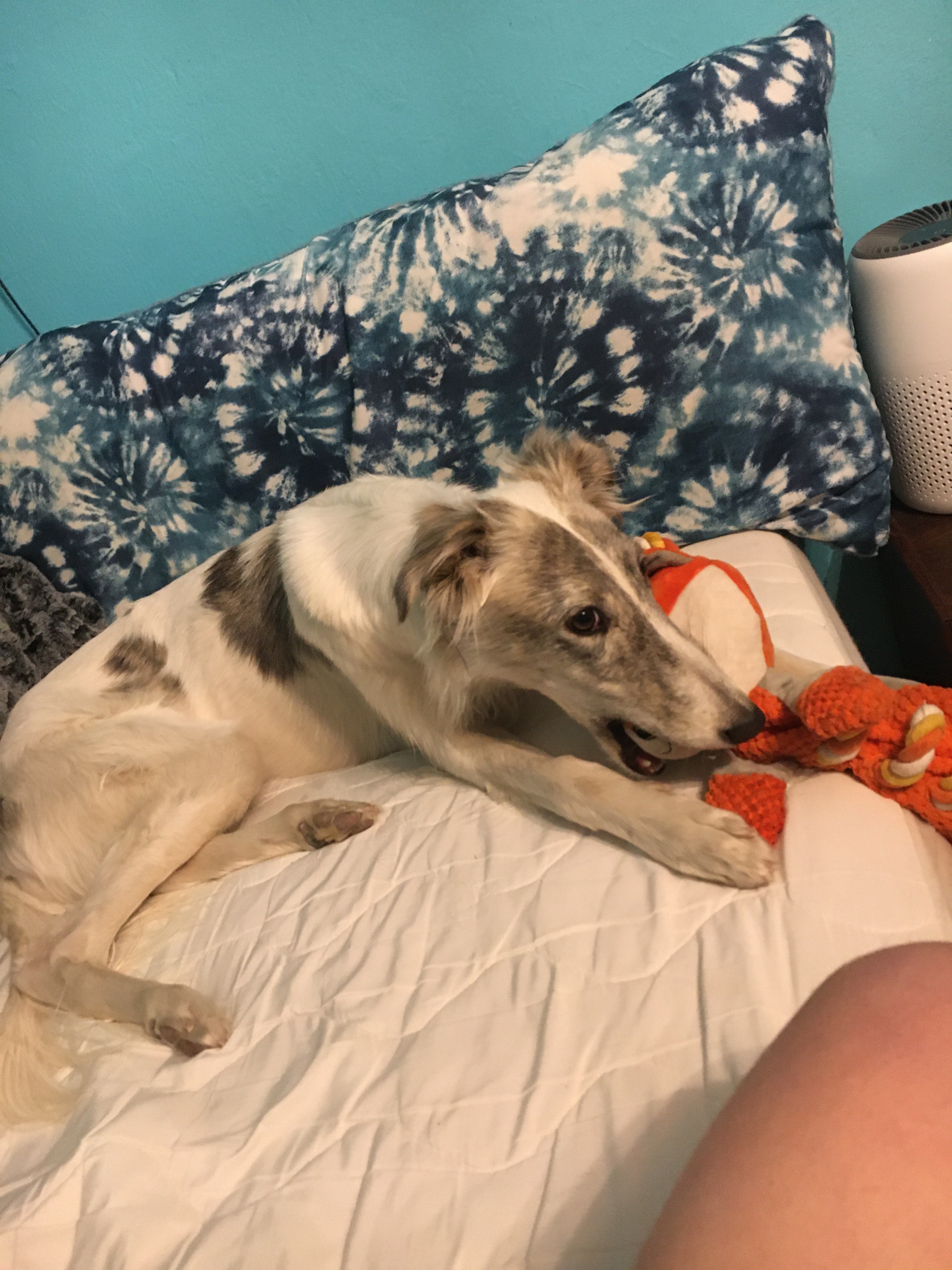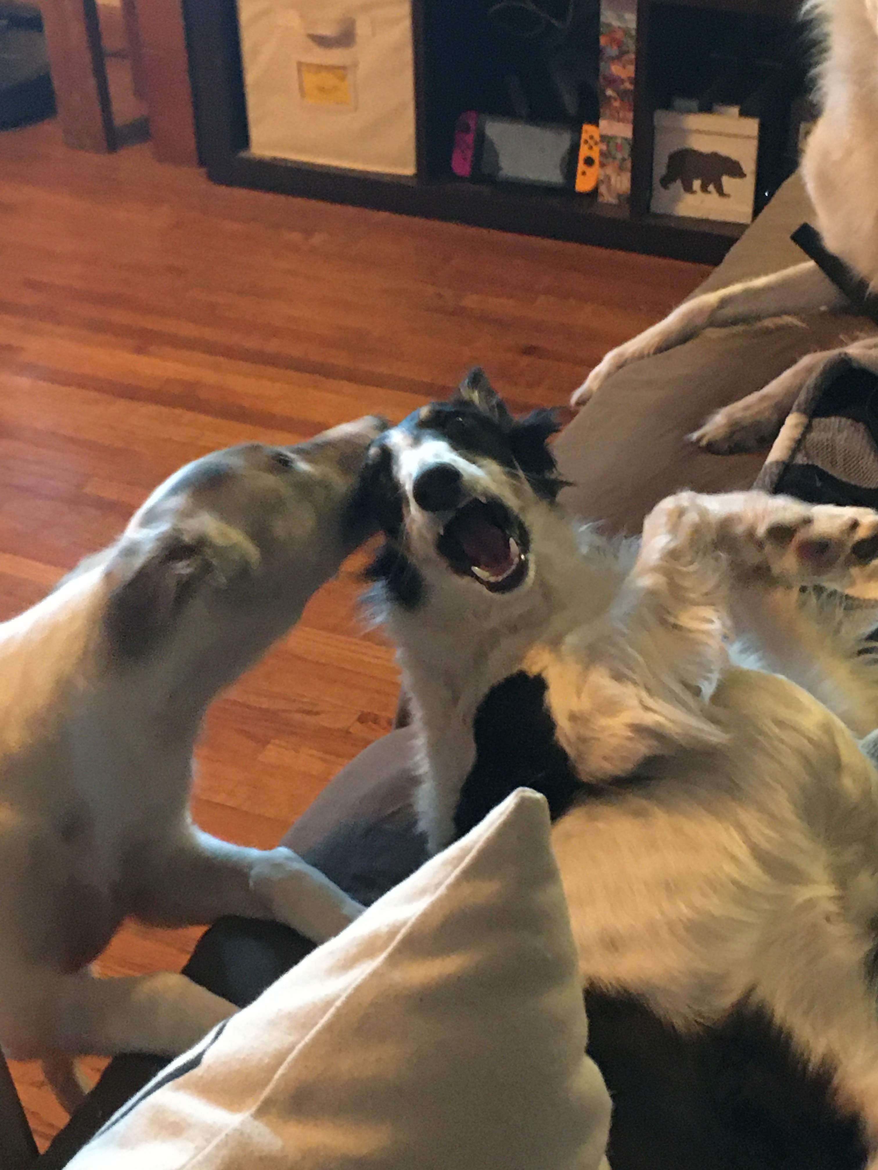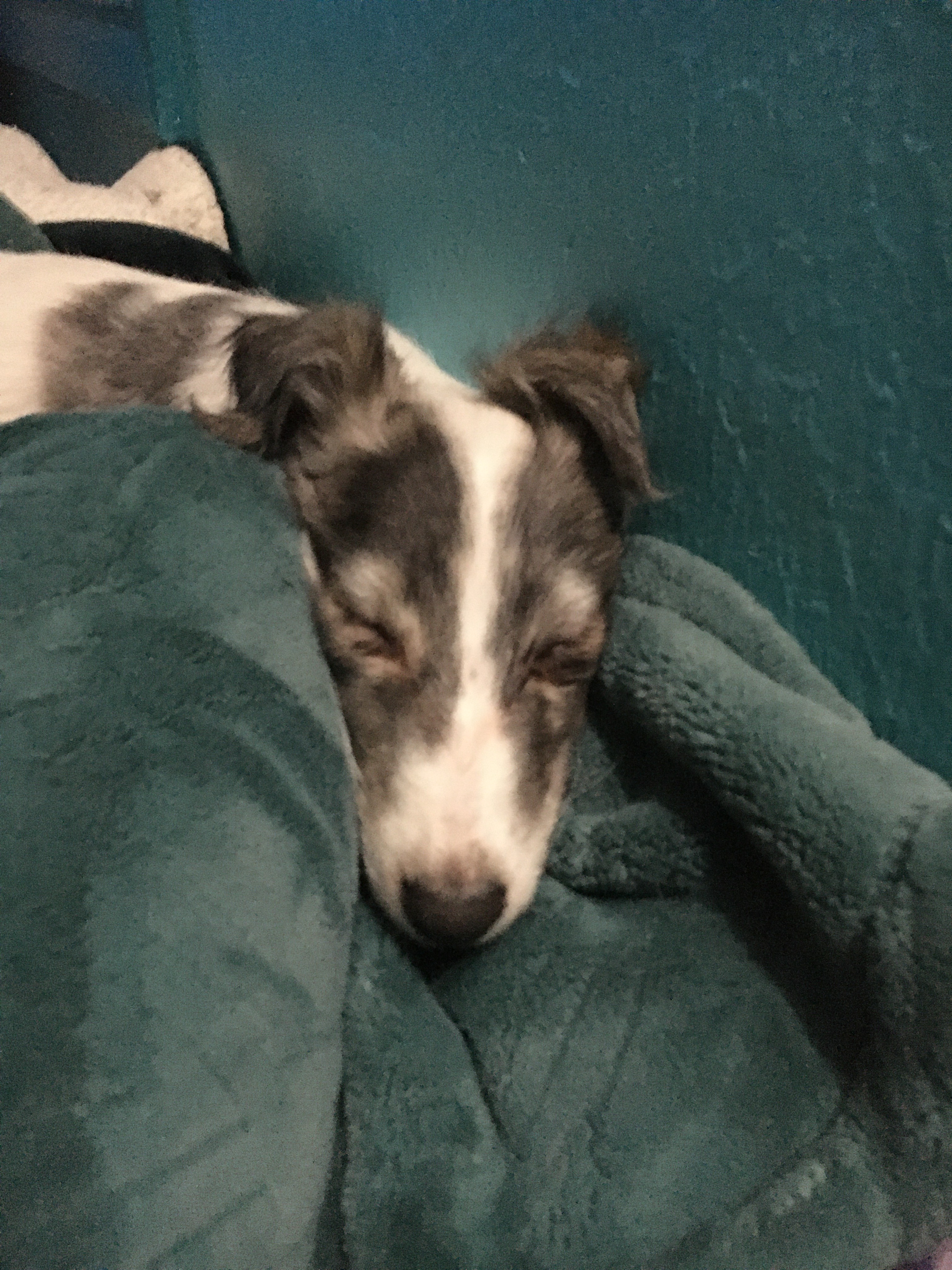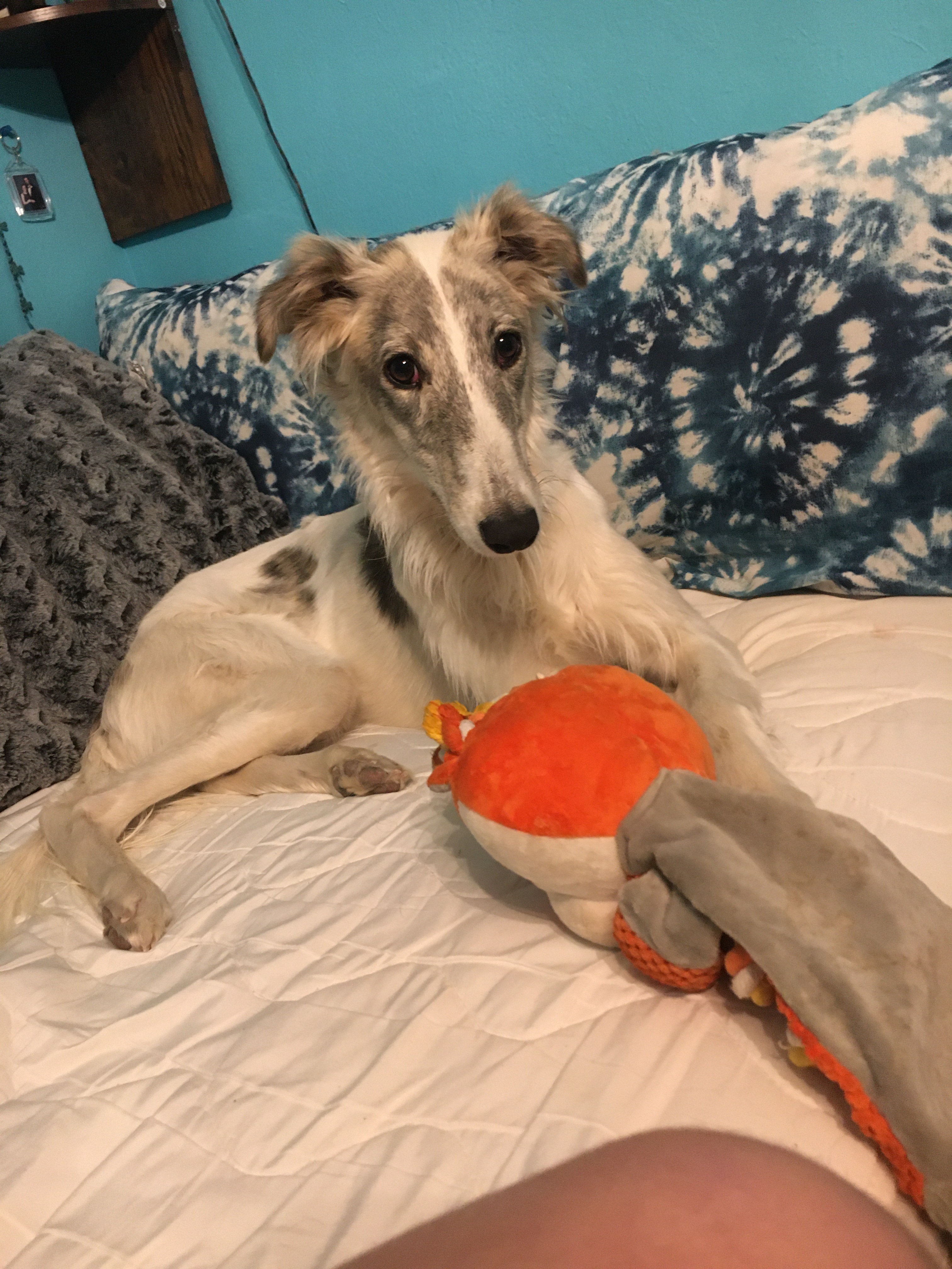 Zing is a very playful and cuddly. She loves racing, agility, and tug. She is also very food motivated and loves to play with Ruby, Leopard, and Gambit.
