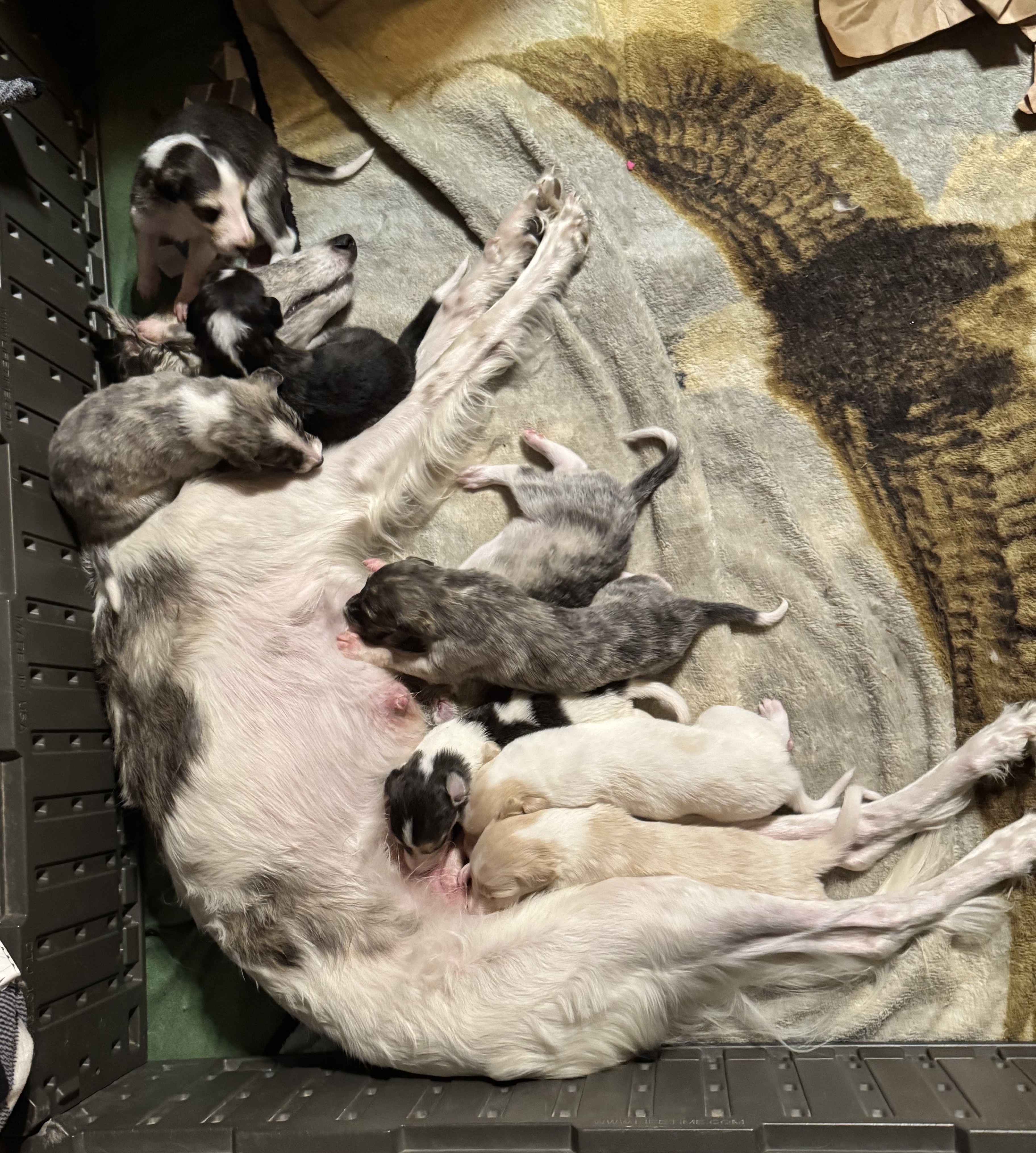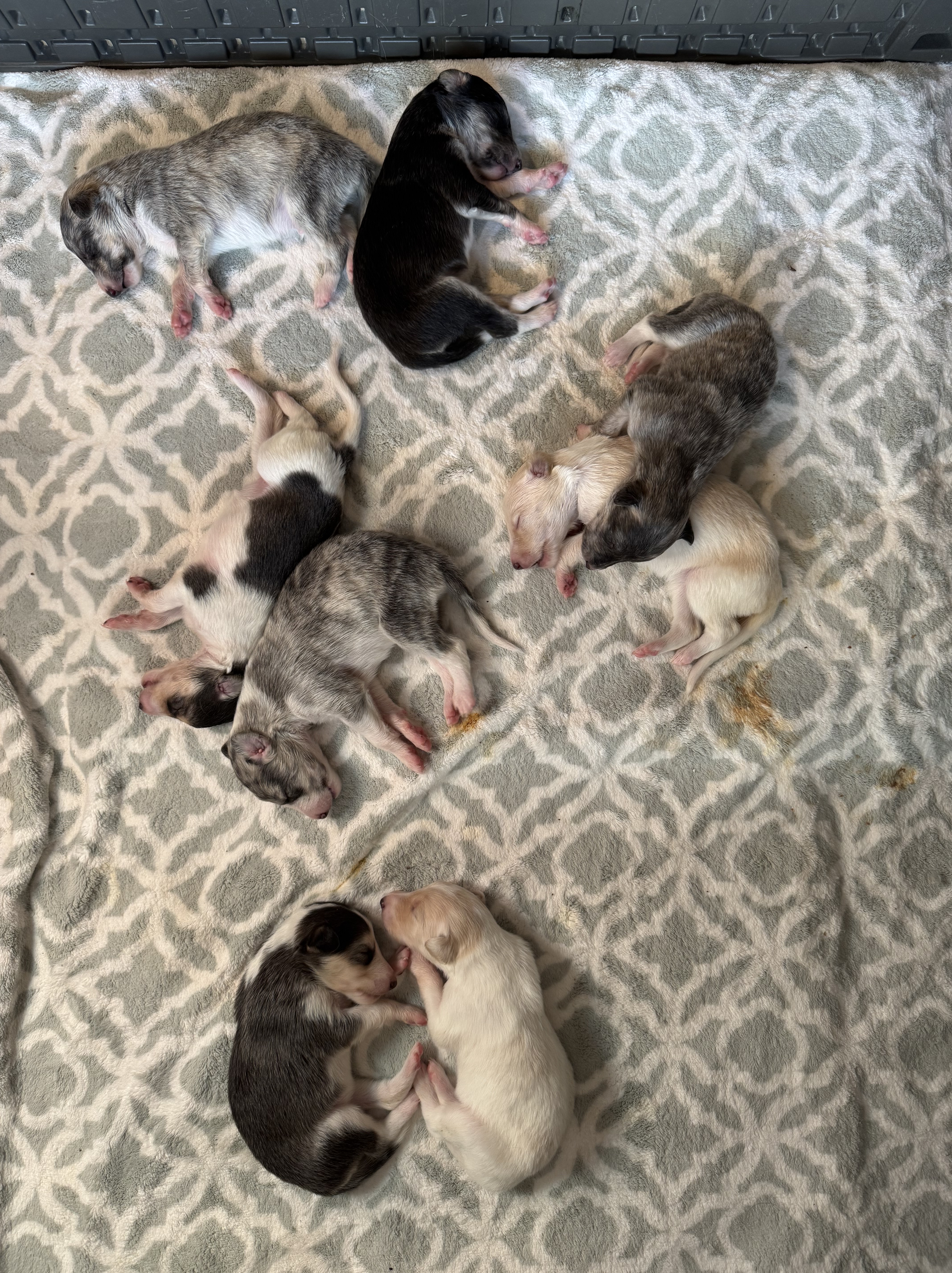 The Zing x Achilles litter was born on June 2nd, with eight happy, healthy puppies. They will have their own puppy page soon.
