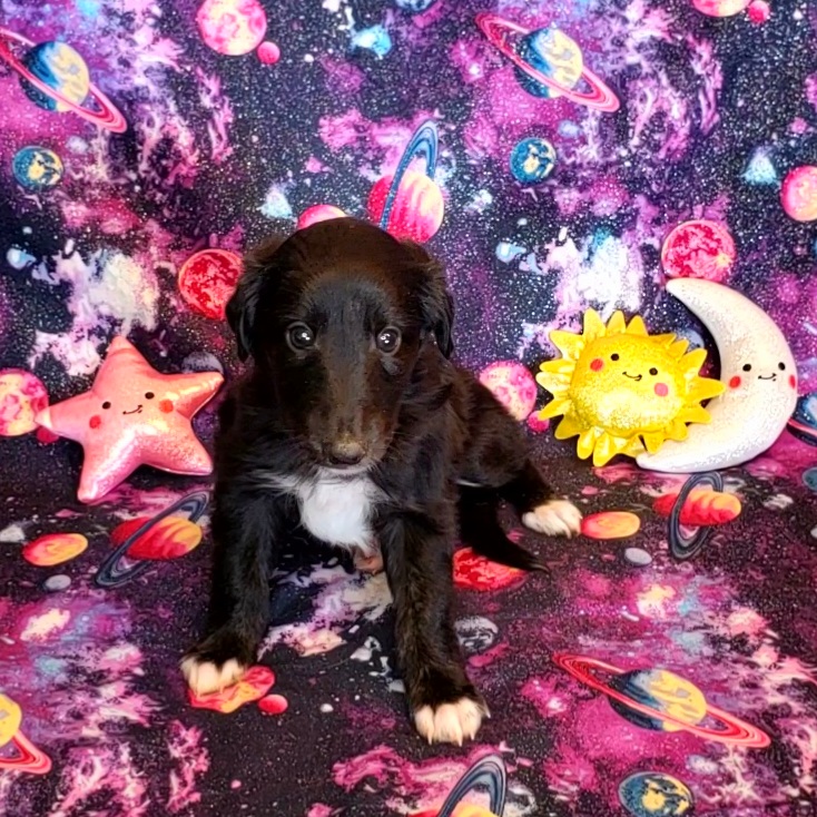Three happy healthy puppies and one special needs puppy born May 8, 2024. All females! Star Hopper has some special needs and will be staying with us for a while.